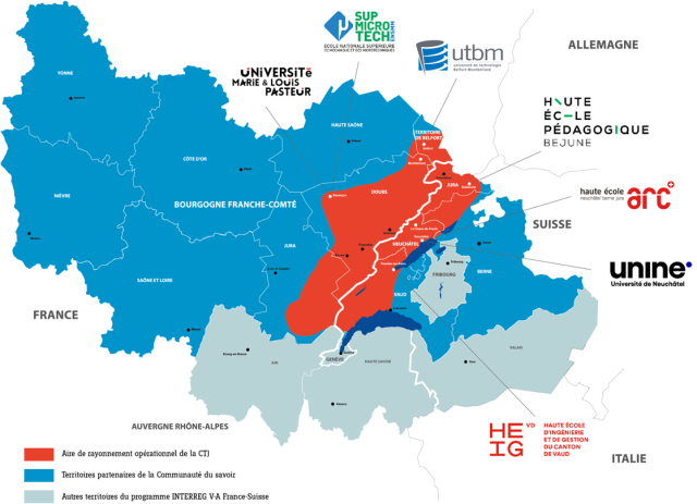 Cette communauté s’inscrit dans un territoire de coopération qui couvre actuellement la Franche-Comté côté français et les cantons de Berne, Jura, Neuchâtel et Vaud côté suisse.